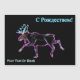 Une représentation néon d'un orignal sur un arrière - plan noir. Le texte cyrillique "S Rozhdestvom" (С Р о д ж е с de Noël - Un voeux de Noël russe) apparaît en bleu et blanc éclatant. Ajoutez votre propre texte supplémentaire. Inspiré par les aurores boréales.