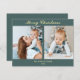 Photo de famille de Noël. Photocard en menthe turquoise & couleurs vanille avec deux photos. Horizontal.