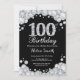100e Invitation d'anniversaire. Arrière - plan en damier en pierre d'argent. Élégant invitation du Bassin d'Anniversaire. Noir et Blanc. Anniversaire adulte. Les femmes, anniversaire. Hommes Anniversaire.