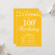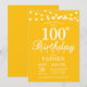 Invitation du 100e anniversaire avec des lumières à cordes.Arrière - plan jaune. Hommes ou Femmes Anniversaire. 13ème 15ème 16ème 18ème 20ème 21ème 30ème 40ème 50ème 60ème 70ème 80ème 90ème 100ème, Tout âge. Pour plus de personnalisation, cliquez sur le bouton "Customiser" et utilisez notre outil de conception pour modifier ce modèle.