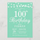 100e anniversaire Invitation avec String Lights.Mint Arrière - plan vert. Hommes ou Femmes Anniversaire. 13ème 15ème 16ème 18ème 20ème 21ème 30ème 40ème 50ème 60ème 70ème 80ème 90ème 100ème, Tout âge. Pour plus de personnalisation, cliquez sur le bouton "Customiser" et utilisez notre outil de conception pour modifier ce modèle.