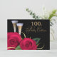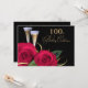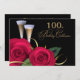 Les roses rouges et les tasses de Champagne élégants conçoivent les 100th invitations de célébration d'anniversaire. Customisez le nom, la date et tous les détails de vos invitations. Cartes assorties, timbres-poste et d'autres produits disponibles dans la catégorie d'invitations d'anniversaire/fête d'anniversaire de notre magasin.