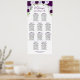 Ce beau tableau mariage comprend 10 tables et présente un design floral rustique avec des roses aquarelles peints à la main dans les tons violet royal, lavande et prune, entourés de sprigs d'eucalyptus feuilles et de verdure du jardin. La disposition verticale, longue et étroite, peut accueillir jusqu'à 100 personnes, avec 10 places par table. L'élégant titre de calligraphie de script dit "Bienvenue! s'il vous plaît trouvez votre table" et les noms du couple et de leur mariage apparaissent en bas. Ce tableau de sièges est à la fois agréable et fonctionnel, ce qui permet aux invités de trouver facilement leurs sièges tout en ajoutant à la beauté de votre réception de mariage.