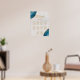 Ce tableau de sièges mariage comporte 10 tables. Dans les coins supérieur gauche et inférieur droit, il y a des géolocalisations bleues. L'arrière - plan est en marbre blanc. Les noms de la mariée et du marié et le titre Bienvenue sont écrits dans un élégant script calligraphique. Tout le texte a une couleur dorée. Le geode bleu est une photo de Robert Ramsay de Pixabay et il est gratuit pour un usage commercial.