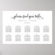 Ce petit tableau horizontal noir et blanc est parfait pour un mariage classique élégant. Vous pouvez modifier la couleur de l'arrière - plan. Cliquez simplement sur le lien personnaliser plus loin, affiché sous la zone de personnalisation du texte à droite, et choisissez votre arrière - plan de couleur personnalisé. Cette affiche montre l'organisation des convives assis à côté des tables et offre suffisamment d'espace pour environ 80 convives. Faites place à plus (ou moins) de clients en cliquant sur le bouton "personnaliser" et diminuez ou augmentez la taille de la police.