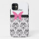 cas de l'iPhone 5 avec le motif assez rose de papillon et de damassé avec la couleur d'accent blanche que vous pouvez changer. Customisez le monogramme avec tout le nom ou initiales. Protège votre téléphone portable dans le style et a des ouvertures pour tous vos ports et boutons. Conçu pour des dames ou des filles et n'importe qui qui rassemblent des choses de papillon.
