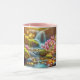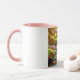 This 11 oz Combo Mug has color on the inside and on the handle, while the rest of the mug is white. An image of pink wildflowers blooming next to a mountain stream covers the front.