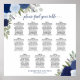 Présentez un magnifique tableau chic de chaises à fleurs boho qui vous permettra de trouver facilement vos tables à la réception de votre mariage. La carte des sièges présente un design aquarelle magnifiquement peint à la main, avec des roses dans un joli mélange de bleu poussiéreux, de bleu marine et d'indigo, ornés de sprigs de feuilles de jardin et de feuillage. Le titre de calligraphie complexe ajoute une touche de sophistication supplémentaire. Avec un espace suffisant pour accueillir jusqu'à 110 noms à 11 tables, chacune d'une capacité de 10 invités, le tableau inclut également le nom du couple et la date du mariage en bas.