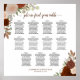 Ce beau tableau de 11 places présente un design boho chic rustique avec des roses d'aquarelle peints à la main dans les tons d'automne de la pêche au corail, de l'orange rouille et du bois brûlé. Les fleurs sont entourées de feuilles d'eucalyptus et de feuillage du jardin d'automne. A assigné des places pour 110 personnes avec 10 places par table, avec un élégant titre de calligraphie de script et espace pour les noms du couple et mariage date ci-dessous. Une façon merveilleuse de rendre votre réception de mariage magnifique tout en facilitant la recherche de sièges par vos invités.