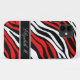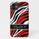 Coque iPhone 5 personnalisé et élégant, avec votre nom, et conçu avec un motif d'impression zèbre avec bandes zèbres noir, blanc et rouge.