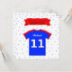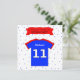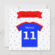 Ces cartes de remerciement correspondent aux invitations et autres objets de la collection du 11e anniversaire. Le design montre une bannière d'anniversaire rouge et un t-shirt sport bleu sur un arrière - plan de petites étoiles bleues. Personnalisez la conception des cartes en ajoutant le nom de l'enfant d'anniversaire au t-shirt sport. Le texte sur la bannière peut également être customisé, ou vous pouvez utiliser le "Merci par défaut pour venir à mon parti d'ANNIVERSAIRE". Au verso se trouve une bannière d'anniversaire avec du texte personnalisable supplémentaire - l'exemple montré enregistre la date de la fête.