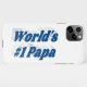 Boîtier téléphonique avec le #1 Papa du monde en texte bleu marine 3D. Disponible pour plusieurs styles de téléphone.