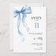 Make your teenager's special day even more memorable with our 11th birthday invitation featuring a beautiful blue bow design. This elegant and classy invitation is an editable template that you can personalize easily, making it perfect for a 11-year-old girl’s celebration party. With its minimalist style and charming watercolor coquette element, this invitation is not only visually appealing but also practical, allowing you to send a stylish blue ribbon invite with just a few clicks. Choose our printable card to ensure that every detail stands out as you invite friends and family to join in the festivities. Celebrate her journey into teenage years with a stunning invite.