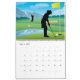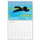 Calendrier 2025 de 12 Mois de Sports Design, avec un sport différent chaque mois, y compris : ski, football, basket-ball, baseball, course à cheval, golf, natation, piste et terrain, tennis, hockey, football et patinage artistique.