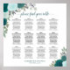 Pour faciliter la tâche de vos clients mariages, trouvez leurs tables à la réception grâce à ce bel organigramme arborant un magnifique design boho chic floral orné de roses peints à la main dans des tons turquoises, turquoise, cyan et aqua. Les fleurs sont entourées de délicats sprigs d'eucalyptus feuilles et de feuillage de jardin, et le titre calligraphique élégant ajoute une touche de sophistication à l'ensemble. Ce tableau peut contenir 120 noms sur 12 tables de 10 places chacune, et il y a de l'espace pour les noms du couple et la date du mariage en bas.