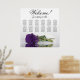 Ce tableau de places mariage comporte 12 tables et présente un design romantique, élégant et magnifique. Un arrangement floral moderne est accentué par un seul rose royal violet à longue tige, allongé sur son côté, se reflétant dans un bassin d'eau. Le titre, "Bienvenue! s'il vous plaît trouver votre table," est écrit en calligraphie de script sophistiquée, tandis que les noms du couple et la date du mariage sont affichés en bas. Avec des tables de 120 places et 10 places par table, ce tableau fournit de nombreux aménagements pour que vos invités puissent profiter de la fête.