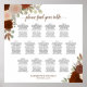 Ce tableau de 13 places mariage présente un beau design boho chic floral avec des roses d'aquarelle peints à la main dans les tons de rouille orange, corail, pêche et brûlé, ainsi que des feuilles d'eucalyptus et le feuillage du jardin d'automne. L'arrangement traditionnel a de l'espace pour 130 noms avec 10 sièges par table avec un élégant titre de calligraphie script et espace pour les noms du couple et mariage date ci-dessous. Une façon merveilleuse d'ajouter élégance et style à votre réception tout en aidant vos invités à trouver leurs sièges.