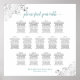 Ce beau tableau de 13 places mariage comprend des assignations de table pour 130 personnes avec 10 places par table. Le design présente du gris foncé et du texte turquoise ou turquoise sur un arrière - plan blanc avec un titre de calligraphie de script dentée. Les coins sont décorés d'un faux fil argenté frileux avec des boucles et des tourbillons, le rendant à la fois simple et élégant. Une façon élégante, chic et sophistiquée d'aider vos clients à trouver leur place à la réception.