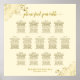 Ce beau tableau de 13 places mariage comprend des assignations de table pour 130 personnes avec 10 places par table. Le design présente du texte en or sur un arrière - plan couleur crème ou ivoire avec un titre de calligraphie en écriture dentée. Les coins sont décorés d'un faux fil frileux avec des boucles et des tourbillons qui le rendent à la fois simple et élégant. Une façon élégante, chic et sophistiquée d'aider vos clients à trouver leur place à la réception.