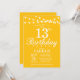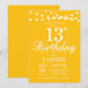 Invitation au 13e anniversaire avec lumières à cordes. Arrière - plan jaune. Anniversaire enfant. Invitation Anniversaire de fille ou garçon. 13ème 15ème 16ème 18ème 20ème 21ème 30ème 40ème 50ème 60ème 70ème 80ème 90ème 100ème, Tout âge. Pour plus de personnalisation, cliquez sur le bouton "Customiser" et utilisez notre outil de conception pour modifier ce modèle.