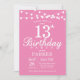 Invitation au 13e anniversaire avec lumières à cordes. Arrière - plan rose. Anniversaire enfant. Invitation Anniversaire fille dame. 13ème 15ème 16ème 18ème 20ème 21ème 30ème 40ème 50ème 60ème 70ème 80ème 90ème 100ème, Tout âge. Pour plus de personnalisation, cliquez sur le bouton "Customiser" et utilisez notre outil de conception pour modifier ce modèle.