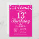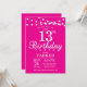 13e Invitation à l'anniversaire avec lumières à cordes. Arrière - plan rose chaud.Anniversaire enfant. Invitation Anniversaire de la fille Lady. 13e 15e 16e 18e 20e 21e 30e 40e 50e 60e 70e 80e 90e 100e, n'importe quel âge.