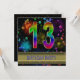 Une amusante invitation à la fête du 13e anniversaire avec des couleurs joyeuses, des bulles et des feux d'artifice. Une belle carte pour tout âge. Voir toute la gamme d'invitations et de cartes dans mon magasin.