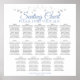 Faites de votre réception de mariage une belle avec ce tableau de sièges. Conçu dans le cadre de notre Suite de Mariage Elégante Bleu & Gris, il présente un design simple mais élégant avec du texte bleu clair & gris sur un arrière - plan blanc avec une bordure florale en faux feuille argent.Ce graphique montre les affectations de table afin que vos invités auront un temps facile à trouver la bonne table.