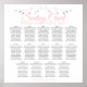 Faites de votre réception de mariage une belle avec ce tableau de sièges. Conçu dans le cadre de notre suite de mariage rose et gris élégant, il présente un design simple mais élégant avec du texte rose et gris sur un arrière - plan blanc avec une bordure florale en faux feuille d'argent.Ce graphique montre l'affectation des tables afin que vos invités puissent facilement trouver la bonne table.