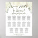 Ce beau tableau de 14 tables, boho chic mariage, présente une aquarelle fleurie avec des roses, des fleurs et des fleurs dans les tons ivoire, blanc et crème, avec des feuilles d'eucalyptus vert sauge et du feuillage du jardin. Le titre dit : "Bienvenue! s'il vous plaît trouvez votre table" écrit dans élégante calligraphie de script. Il y a de la place pour les noms du couple et la date du mariage. Ce tableau a des affectations de table pour 140 invités avec 10 sièges par table.
