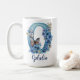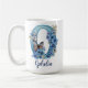 Un mug à café personnalisé dans des tons de bleu avec un papillon coordonné, présentant le monogramme de la lettre "O". Personnalisez-le facilement avec votre nom ou créez un cadeau unique pour vos proches. Suffisamment d'espace pour ajouter une citation ou un message supplémentaire ou même un arrière-plan. Ce mug est également disponible dans différents styles et combinaisons de couleurs. Parcourez la collection pour voir des exemples de ce type de police sur les différents styles et tailles de tasses.