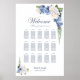 Aidez vos invités à trouver leur table avec ce tableau de sièges à fleurs de rose bleue et blanche mariage. Il convient à une mariage de 15 tables et 150 couverts.