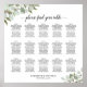Ce tableau de 15 places mariage présente une aquarelle rustique peinte à la main avec des sprigs de feuilles d'eucalyptus, de la verdure et du feuillage dans les tons de sauge et de vert mousse. Le titre élégant de calligraphie de script dit : S'il vous plaît trouver votre table, et les noms du couple et la date mariage apparaissent en bas. Une façon merveilleuse d'aider vos invités à trouver leurs sièges tout en ajoutant élégance et style à votre réception. Comprend des places assises pour 150 personnes avec les traditionnels 10 places par table.