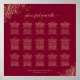 Ce charmant tableau de sièges mariage présente un design simple et magnifique en marron, bordeaux, ou vin rouge et or, accentué par des boucles et tourbillons dorés complexes dans chaque coin. Le texte est en or, présenté dans une police de calligraphie de script pour le titre. En bas, il y a de la place pour les noms du couple et la date du mariage. Le tableau peut accueillir jusqu'à 150 personnes assises à 15 tables, avec 10 places par table. Ce tableau de sièges est une façon agréable d'accueillir vos invités à votre réception de mariage, afin qu'ils puissent rapidement trouver leur place.