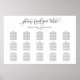 Moins c'est plus, ce simple tableau de sièges mariages va directement express votre personnalité et donner à vos invités des informations claires. Faites une grande première impression avec ce panneau de réception horizontal minimaliste noir et blanc, parfait pour un mariage classique élégant. Vous pouvez ajouter la couleur arrière - plan. Cliquez simplement sur le lien personnaliser plus loin, affiché sous la zone de personnalisation du texte à droite, et choisissez votre arrière - plan de couleur personnalisé. Cette affiche montre l'organisation des convives assis à côté des tables et offre suffisamment d'espace pour accueillir environ 120 convives. Faites place à plus (ou moins) de clients en cliquant sur le bouton "personnaliser" et diminuez ou augmentez la taille de la police.