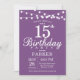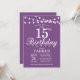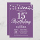 15e anniversaire Invitation avec lumière à cordes. Arrière - plan Lilac Lavande Violette. Anniversaire de enfant... Invitation anniversaire Élégante de la fille Lady. 13e 15e 16e 18e 20e 21e 30e 40e 50e 60e 70e 80e 90e 100e, n'importe quel âge.