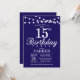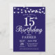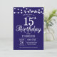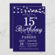 15e anniversaire Invitation avec lumière à cordes. Arrière - plan bleu de la Marine.Anniversaire enfant. Invitation Anniversaire garçon ou fille. 13e 15e 16e 18e 20e 21e 30e 40e 50e 60e 70e 80e 90e 100e, n'importe quel âge.