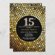 15e Invitation d'anniversaire. Parties scintillant noire et or. Diamant d'or.Fête d'anniversaire pour enfant. Pour la fête de bash Anniversaire de garçon ou de fille.
