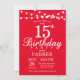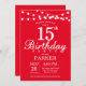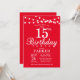 15e anniversaire Invitation avec lumière à cordes. Arrière - plan rouge.Anniversaire enfant. Invitation Anniversaire garçon ou fille. 13e 15e 16e 18e 20e 21e 30e 40e 50e 60e 70e 80e 90e 100e, n'importe quel âge.