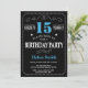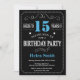 15e anniversaire Invitation Typographie bleue et noire. Tableau de bord. Arrière - plan noir et blanc. Anniversaire adulte. Hommes ou femmes, anniversaire. Enfants Garçon ou fille Ado Anniversaire adolescente Invitation . 13e 15e 16e 18e 20e 21e 30e 40e 50e 60e 70e 80e 90e 100e. N'Importe Quel Âge.