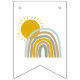 Ce drapeau à baby shower flottante est orné d'un arc-en-ciel bleu pastel et moutarde, d'un soleil palpitant et d'une police de caractères élégante. C'est l'invitation baby shower parfait pour votre baby shower bohème, d'été ou de jardin.