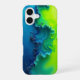 Une pièce d'art numérique vibrante et abstraite qui représente une fissure dynamique et déchiquetée qui divise une surface lisse. D'un côté, la surface est d'un vert citron clair et lumineux, tandis que de l'autre côté passe du bleu profond à un cyan plus clair. La fissure centrale est remplie d'un motif texturé et tourbillonnant de bleus et de verts riches, donnant l'impression d'un gouffre profond et aquatique avec des bords organiques et rocheux. L'ensemble offre un contraste saisissant de couleurs et de textures.