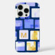 Cool rétro bleu, doré et blanc carrelage bloc bizarre carré aléatoire design motif de décoration . Personnalisez avec votre monogramme.
