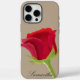 Protégez votre iPhone avec style grâce à cette étonnante étagère téléphonique personnalisée avec une rose rouge vif sur un arrière - plan beige. Personnalisable avec votre nom, cet élégant design floral ajoute une touche romantique et sophistiquée à votre appareil. Parfait pour faire un don pour les anniversaires, les anniversaires ou la Saint-Valentin !