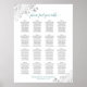 Ce magnifique tableau de sièges mariages comprend des assignations de table pour 160 personnes, avec 10 personnes à chaque table. Le design est simple mais élégant avec du gris foncé et du texte turquoise ou turquoise sur un arrière - plan blanc et dispose d'un faux film argenté en dentelle dans les coins avec une calligraphie script sophistiquée lisant "s'il vous plaît trouver votre table." Sophistiqué et chic.