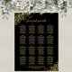 Ce magnifique tableau de sièges mariages comprend des assignations de table pour 160 personnes, avec 10 personnes à chaque table. Le design est simple mais élégant avec du texte doré sur un arrière - plan noir et dispose d'une ficelle en or dentelle dans les coins avec une calligraphie de script sophistiquée "s'il vous plaît trouver votre table." Sophistiqué et chic.