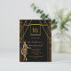 Elégant faux or et glam pour une fête de 16ème anniversaire! Une invitation à la fête d'anniversaire de style art déco en faux or et noir pour une fête glamour. Décoré d'une fille à flapper de style années 1920 devant. Modèles de 16 ans, nom et pour vos informations de fête.