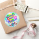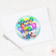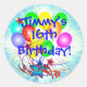 Un bouquet de ballon coloré et amusant et des étoiles éclatantes sur une autre couche arrière - plan de dégradé bleu et blanc éclatent graphique prêt pour vous à personnaliser avec n'importe quel nom et n'importe quel âge d'anniversaire. Insérez vos informations avec n'importe quel "16e anniversaire du nom (ou changer facilement d'âge) !" Grande occasion spéciale amusant et coloré autocollants personnalisés, faveurs de fête, ou enveloppes sceaux! Montré est l'autocollant rond populaire. Idéal pour le grand et doux 16ème anniversaire ou pour les bébés, les enfants, les ados, les hommes et les femmes de tout âge !
