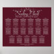 Faites de votre réception de mariage une belle avec ce tableau de sièges. Conçu dans le cadre de notre Suite de Mariage Argent & Bourgogne élégant, il présente un design simple mais élégant avec du texte gris sur un arrière - plan bordeaux avec une bordure florale en faux feuille d'argent. Ce graphique montre les affectations de table afin que vos invités aient un temps facile à trouver la bonne table.