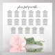 Ce tableau de 17 places mariage a des assignations de table pour 170 personnes (10 personnes par table). Le design est élégant, élégant, moderne, romantique et chic, avec une seule rose rose rose rousse à longue tige reflétant dans l'eau avec des vagues et des ondulations. Il y a un titre de calligraphie de script sophistiqué qui dit "s'il vous plaît trouver votre table" ainsi que l'espace pour les noms du couple et la date du mariage. Un excellent moyen de rendre votre réception belle tout en aidant vos invités à trouver le siège droit.
